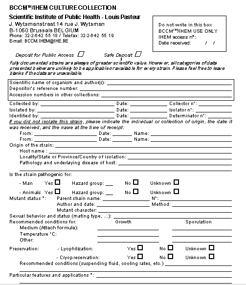 Guidelines prepared for CABRI by DSMZ, CBS and BCCM, 17 May 1998