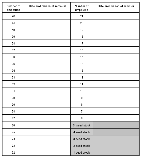 LABORATORY PROCEDURES FOR MICROORGANISMS Appendix M/1998/3.00 Appendix 5.01.2 Protocol Form: Numbers of frozen stock cultures